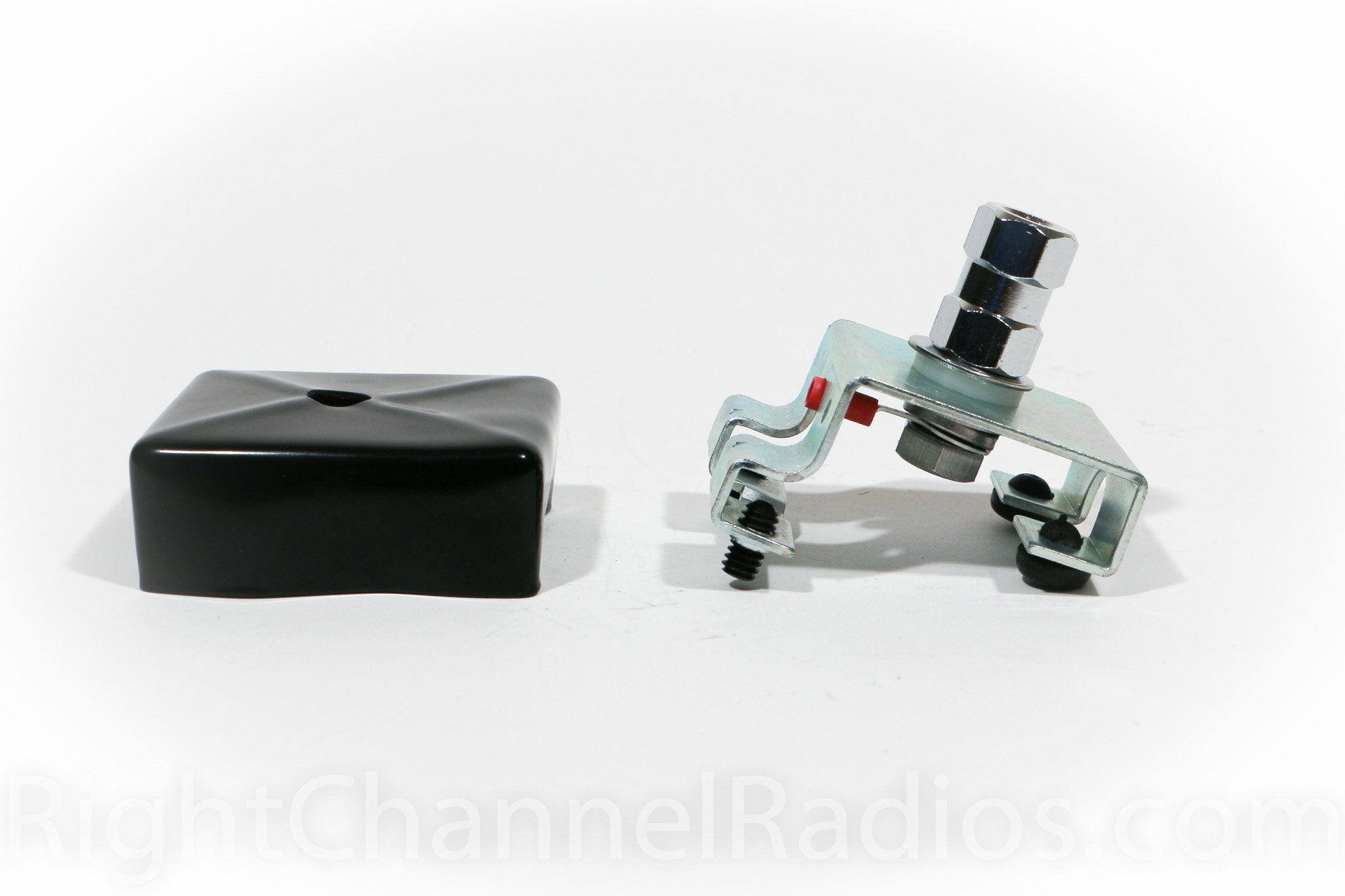 Firestik CB Antenna Mount: The trunk-lip bracket slides over the trunk edge, usually between the trunk deck and the rear window. Two set screws are tightened from the underside to hold the bracket in place. No holes are required on the vehicle. The rear side of the bracket has support feet with rubber bumpers to protect the vehicle finish. The mount comes with a K-4 antenna stud and an Allen wrench to tighten the screws. Recommended for antennas up to 3' (92cm).