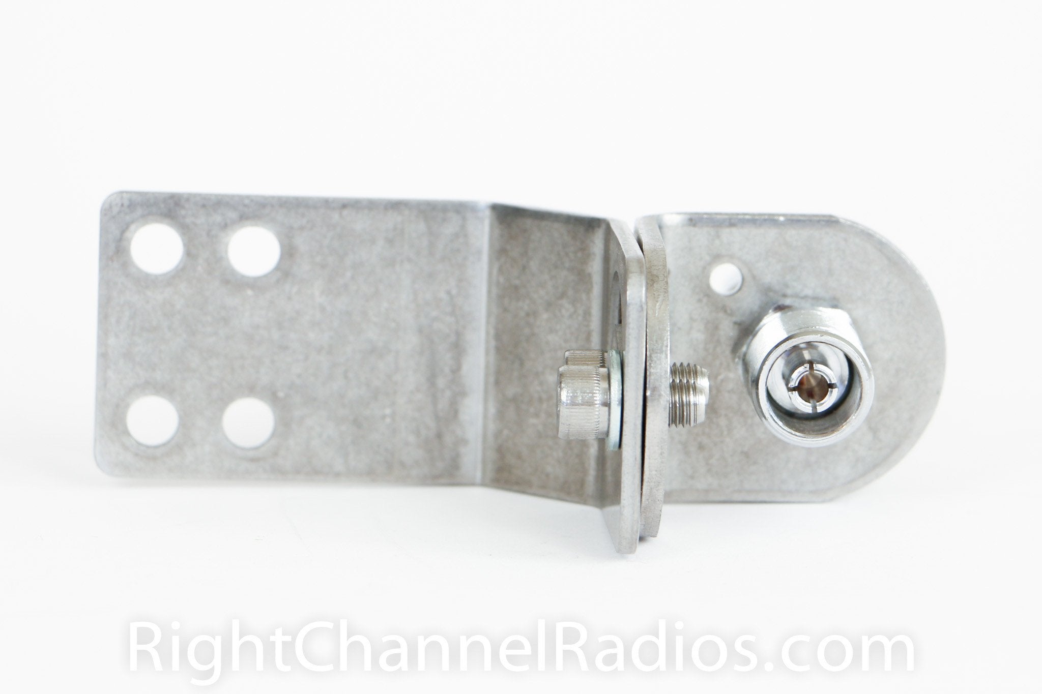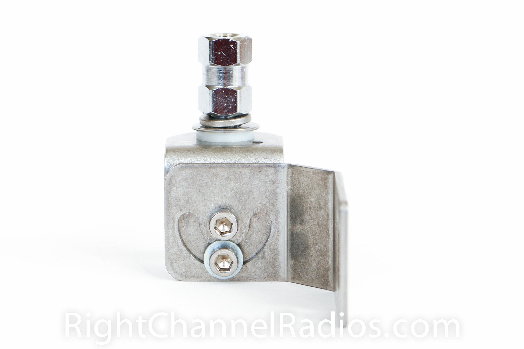 Bracket parts and mounting hardware are made of stainless steel for years of trouble-free use. The bracket is 1.5" (38mm) wide and has a 2" (50mm) reach for mounting inside the door jamb. Overall, the mount is 4.2" (105mm) long. In order to compensate for the door jamb angles, the stud bracket will swivel a full 180 degrees, 90 in each direction. This feature lets you mount the antenna on the left or right side of the vehicle.
